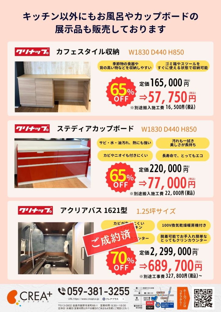 オトクな展示品を多数販売中です。お気軽にお問い合わせください。